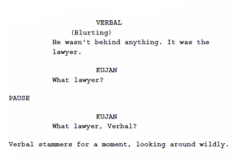 In The Usual Suspects, Verbal has been sparring with Agent Kujan for a while and the story needs a new development to really get the action going again. We get that kick start at around about the half-way mark, page sixty-four, to be exact:
